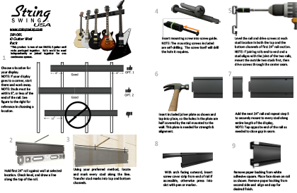 You’ve put a lot of time and money into building your unique collection of guitars. The same thought and consideration should go into creating a personal guitar display. The benefits of mounting your guitars are truly endless. Every guitarist will love the accessibility and artistic display this 10-guitar rack provides. Perhaps one of the most appealing benefits of the SW10RL-K is its ability to optimize space, keeping your valuable guitars safely mounted in your home studio, office, bedroom, or living room. This multi-guitar rack is also great in retail settings, providing a modular display for your available guitars. Wherever you choose to mount your collection or inventory, String Swing’s SW10RL-K is the best way to do so.